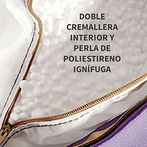 El relleno viene incluido y está compuesto de Perlas de poliestireno expandido de alta recuperación. Al ser grande y espacioso podrás adoptar el mayor confort. Su diseño clásico y colores vivos harán de este una compra segura.