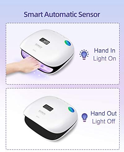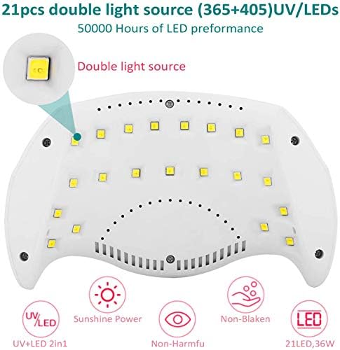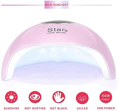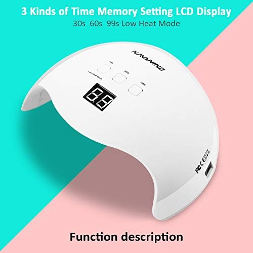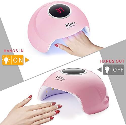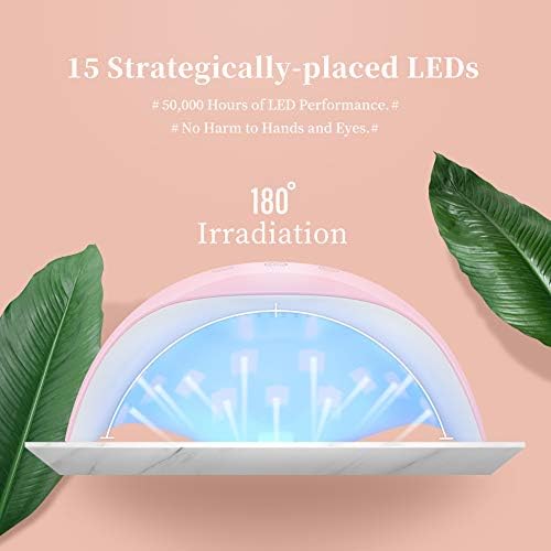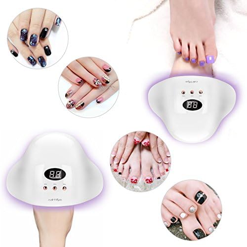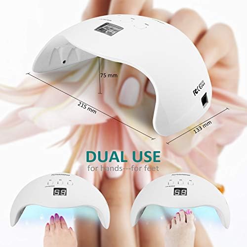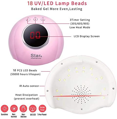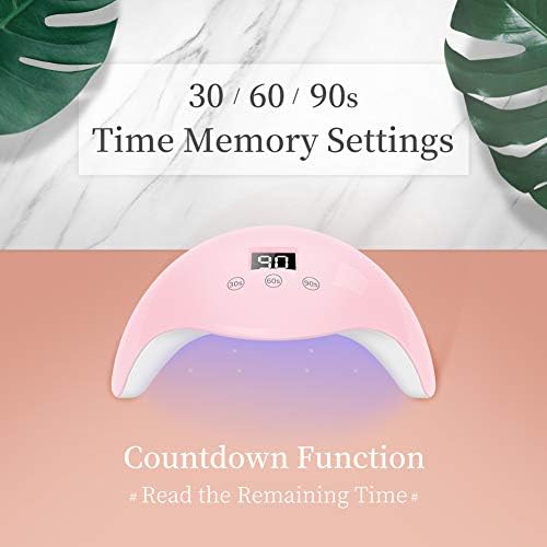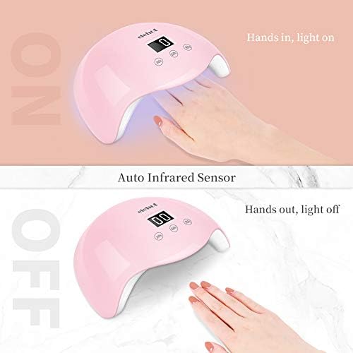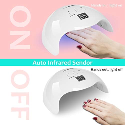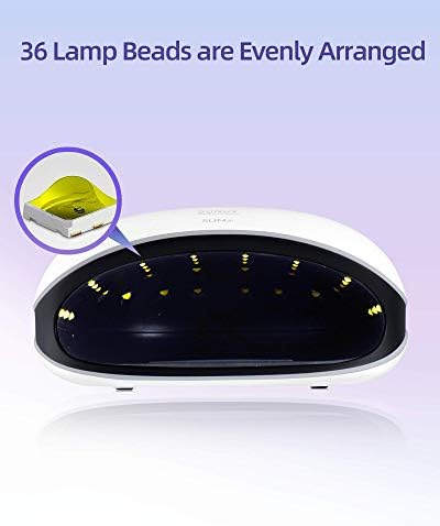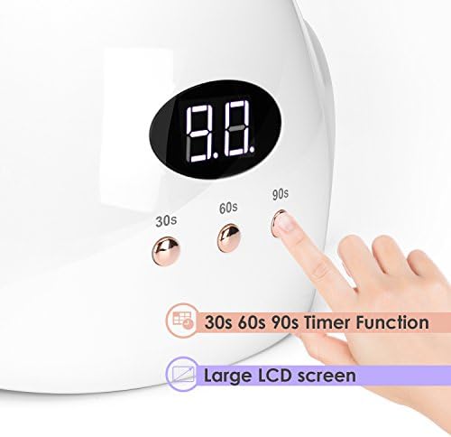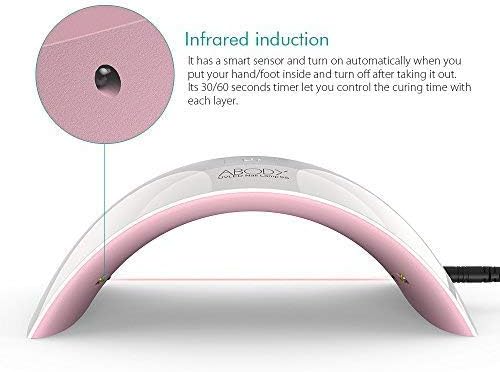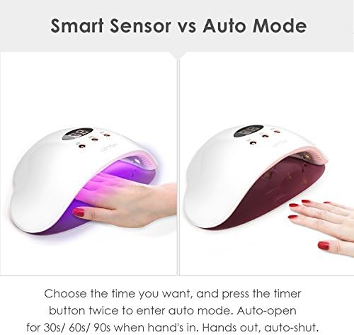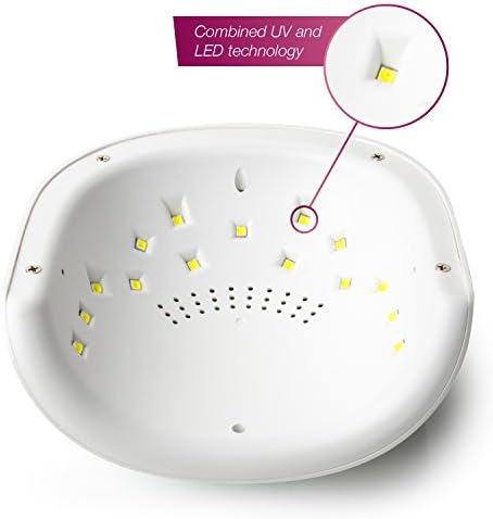 Este secador de uñas funciona con una fuente de luz doble debido a que combina la luz UV con la luz LED. Presenta 18 perlas de luz blanca, cuyas ondas se expanden de manera uniforme en el interior del dispositivo para acortar el tiempo de secado y brindar mejores resultados. Cuenta con un sensor inteligente que reconoce cuándo se introducen las uñas en el dispositivo para encenderlo de manera automática. Gracias a este sensor, las perlas de luz LED solo se encienden cuando es necesario y por ello, duran más tiempo. Este dispositivo también tiene un temporizador y una pantalla LCD en su parte superior.