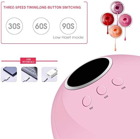Este secador de uñas tiene una potencia de 48 W y 33 perlas de luz LED con una vida útil de 5 años de uso continuo. Su luz LED es apta para endurecer y secar todo tipo de esmaltes y acrílicos. Tiene un temporizador con 4 programas preestablecidos, con los que se pueden contar 10, 30, 60 y 120 segundos respectivamente. El conteo en cuenta regresiva se observa en una pantalla LCD que se encuentra en su parte superior. Además, su tecnología lo hace 80% más rápido que otros secadores de uñas, de modo que es adecuado para agilizar el trabajo diario de manicuristas.