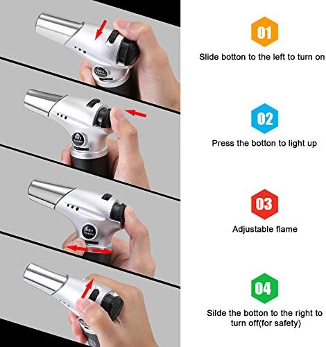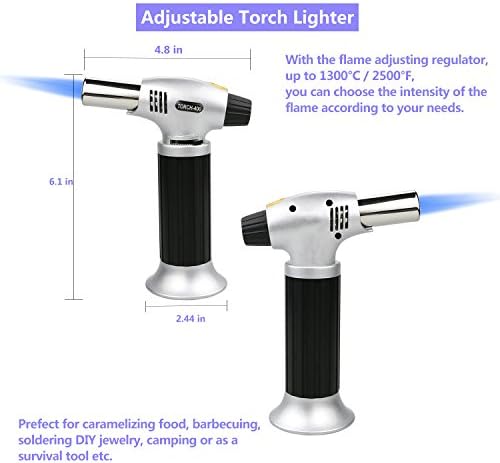 Si te has levantado creativo y necesitas crear buenos platos que hagan que tus invitados se chupen los dedos este soplete de cocina es ideal para ti. Carameliza cremas para tus peques, o haz mariscos a la parrilla con este moderno soplete de cocina ajustable y perfecto para usar de manera versátil. Este completo soplete de cocina está hecho de acero inoxidable y una aleación de aluminio que lo hacen de gran calidad. Dile hola a tu nuevo mejor amigo en casa porque cuando pruebes este fabuloso soplete de cocina de gas no vas a querer parar de innovar en tus platos.