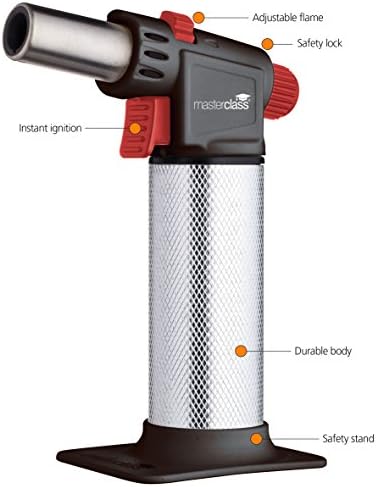 No podíamos cerrar nuestra tabla de productos sin hablar de este lujoso soplete de cocina hecho para los más profesionales. Si te apetecía darle un toque de restaurante a tus comidas del día a día te recomendamos este maravilloso soplete de cocina con una potente llama ajustable para que además de cocinar bien, puedas ahorrar en gas y energía sin que desperdicies el fuego. Nos ha encantado lo fácil que es encender este moderno soplete de cocina con tan solo apretar su gatillo de encendido piezoeléctrico. Sin duda es un soplete de cocina completo y hecho para los más exigentes porque tiene detalles como un mango antideslizante o un soporte de seguridad que van a hacer que sea todo un placer ponerte manos a la obra con la creación de nuevos platos.