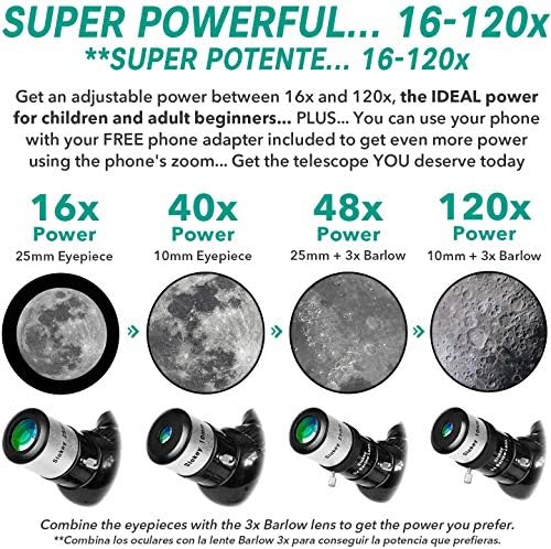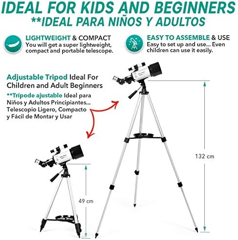 Lo mejor es que es un telescopio ideal para niños, por su facilidad de montaje y su manual de instrucciones guiado y acompañado de ilustraciones. En pocos minutos podrás ver la Luna con gran detalle o planetas como Júpiter y Saturno. Sin duda, un telescopio muy recomendable.