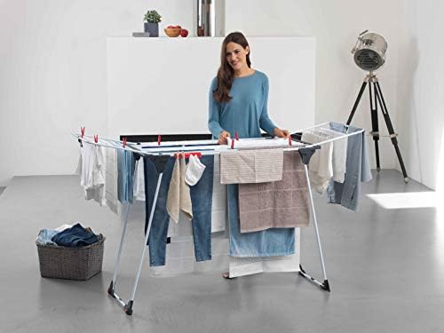 Este tendedero extensible optimiza el espacio y facilita su traslado gracias a sus ruedas. Hecho de aluminio, cuenta con una estructura sólida y 20 metros de alambre para que puedas colgar la ropa para un secado rápido. Como uno de los tendederos más versátiles, este también es muy seguro: ofrece un sistema de bloqueo de las alas y evita el cierre accidental que tantas veces nos tira la ropa al suelo.