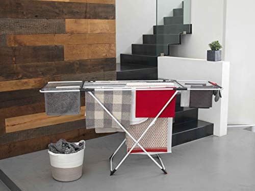 Este modelo de tendedero plegable nos encanta y no es para menos, pues su diseño compacto y su gran capacidad lo hace uno de los mejores tendederos de pie. Sirve tanto para interior como para exterior y sus rejillas son extensibles, pudiéndose plegar por completo, por lo que es un tendedero portátil muy práctico.