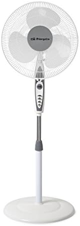 Dentro de la lista de los mejores modelos, este Orbegozo es uno de los más populares por ser el más barato y contar con funciones muy útiles. Este ventilador de pie de 50w dispone de tres velocidades y una hélice de 40 cm. Se trata de un modelo que se puede regular en términos de altura, además de tener también un cabezal orientable para que lo puedas ajustar a tus necesidades. Viene con asa para transportar.