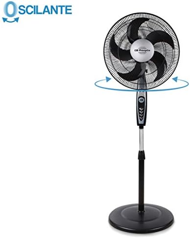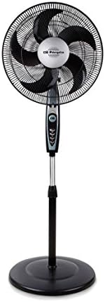 Con un voltaje 230 voltios, este modelo también es muy estético visualmente hablando. En tonos oscuros y grises, este ventilador de pie es uno de los más estables al tener una base amplia que le hace más firme y sólido. Como ocurre en el resto de modelos, este Orbegozo dispone de una rejilla protectora para evitar posibles lesiones al tocar el aspa.