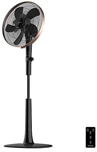 Nosotros lo probamos y nos quedamos encantados, ya que también es uno de los ventiladores de pie más silenciosos incluso al disponer de 24 velocidades. Asimismo, este modelo también tiene tres modos de funcionamiento: turbo, sleep y eco. Nos encanta que este ventilador cuente con temporizador que se puede ajustar hasta un máximo de 18 horas, para así asegurarnos que nos vamos a dormir sin pasar calor, sabiendo que se va a apagar de manera automática. Además de su pantalla LCD donde podrás programar y regular todo a tu gusto, también incluye un mando a distancia para que no te tengas que levantar de la cama.