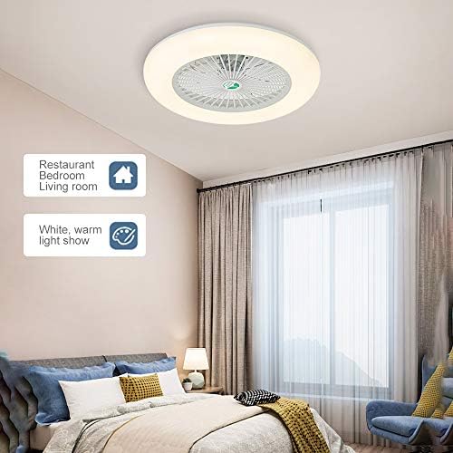 Sus medidas son un diámetro de 55cm y una altura de 18cm. Su iluminación LED posee tres colores: luz blanca, luz natural y luz cálida, que no produce daño en los ojos. También posee tres velocidades de ventilación distintas: baja, media y alta. Es ideal para oficinas, salas de estar y dormitorios.